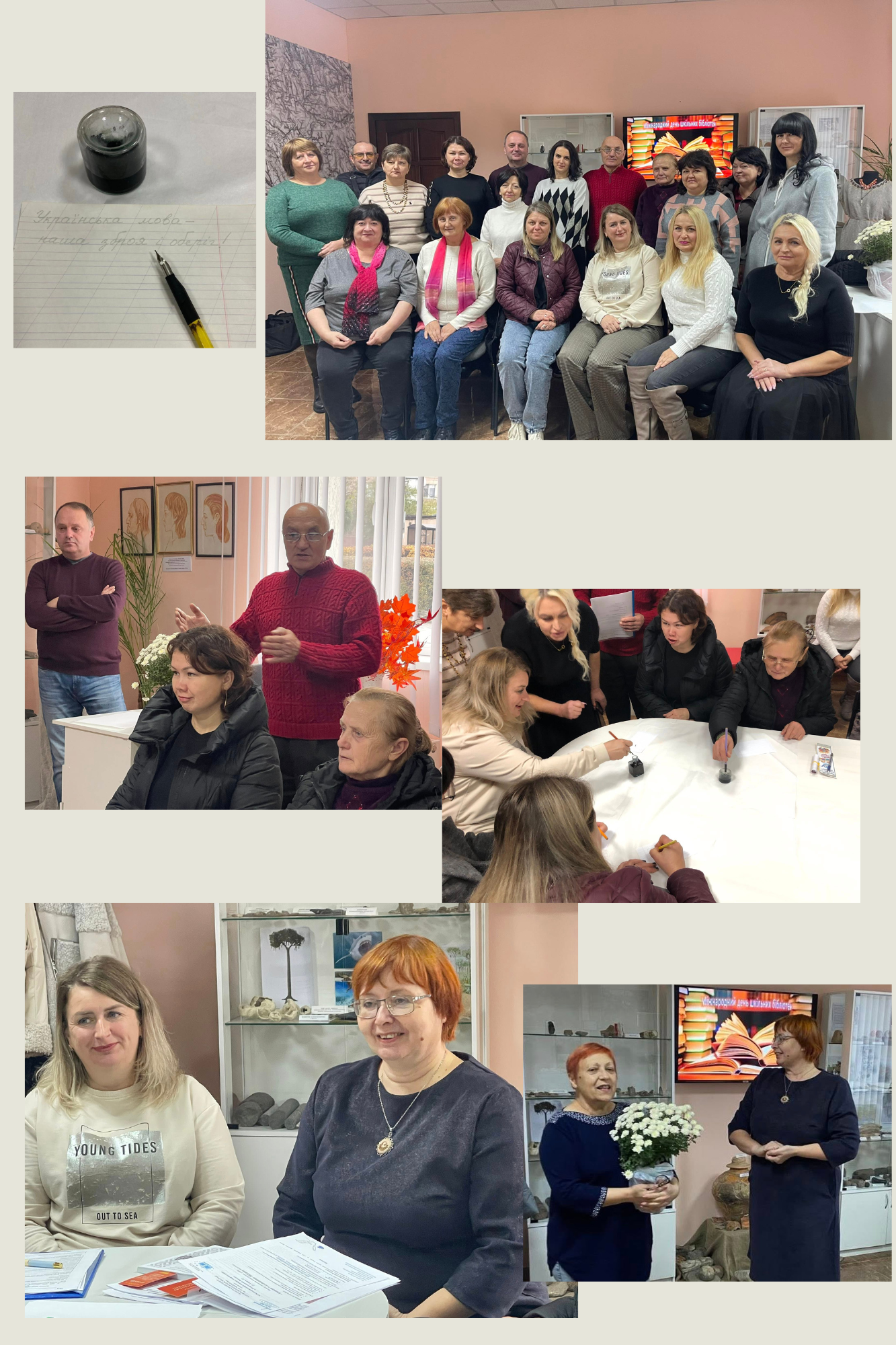У другій половині засідання співробітники музею розповіли гостям про краєзнавчі розвідки становлення шкільних бібліотек на поч. ХХ століття у земських та міністерських училищах на території сьогоднішньої Тальнівської громади, ознайомили присутніх з музейним фондом - раритетними виданнями світських журналів 1894, 1904, 1913 років, розкрили секрет виготовлення чорнил з дубових галів та шкільними ручками з пером писали цим чорнилом на аркушах учнівського зошита у косу лінію. Цей захід привернув особливу увагу учасників, адже вони змогли не лише дізнатися більше про історію писемності, а й на практиці спробувати відтворити старовинні техніки письма.