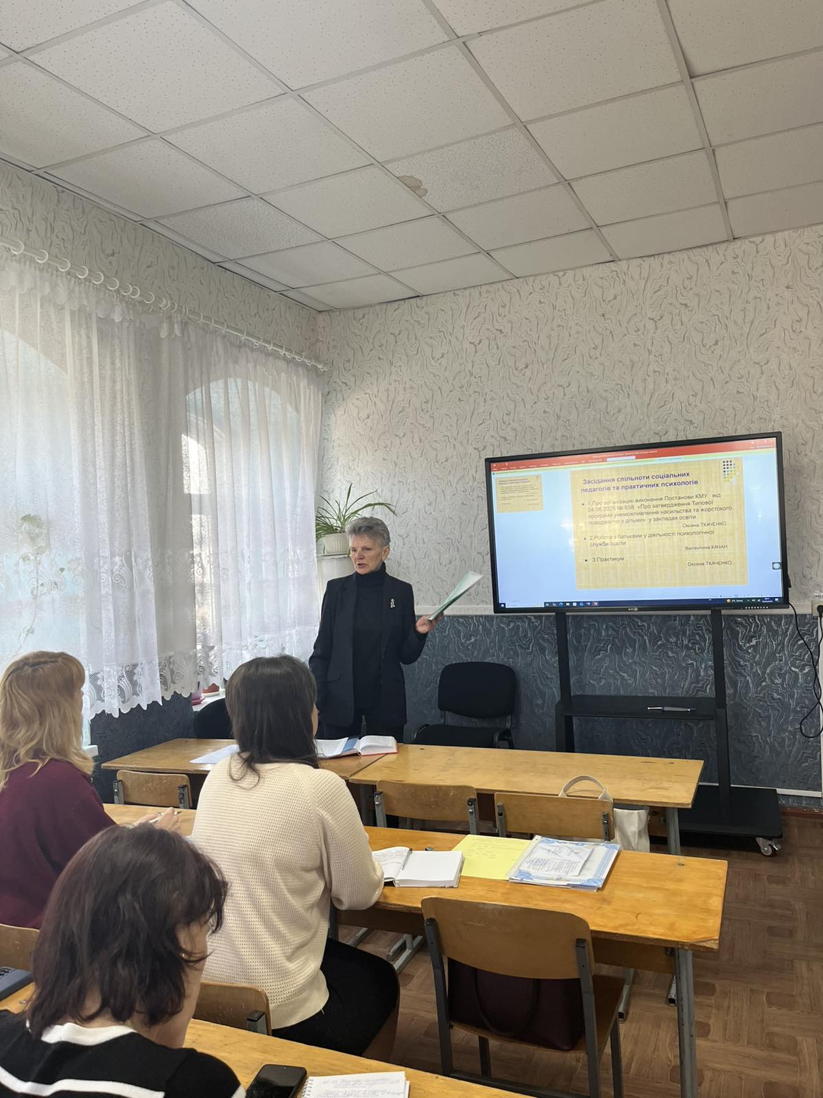 Питання щодо унеможливлення насильства висвітлила директор КУ «ЦПРПП ТМР ЧО» Оксана Ткаченко. Вона провела практикум «Робота закладу освіти за алгоритмом поданим у Постанові КМУ».