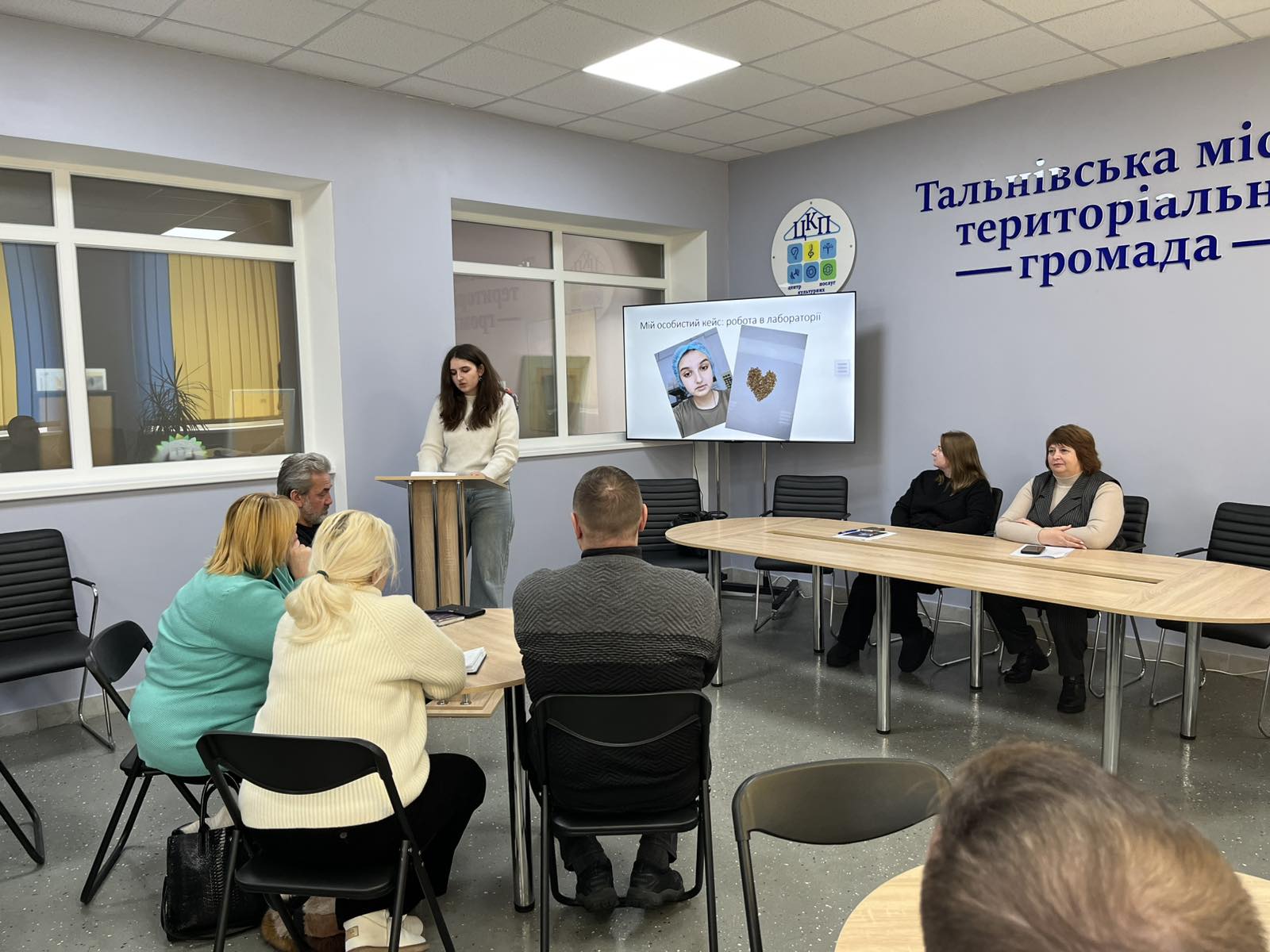 Координатор проекту у громаді, директор КУ «ЦПРПП» Оксана Ткаченко презентувала Аналіз результатів комплексного вивчення стану, умов та потреб у провадженні системи профорієнтаційної роботи в Тальнівській територіальній громаді.