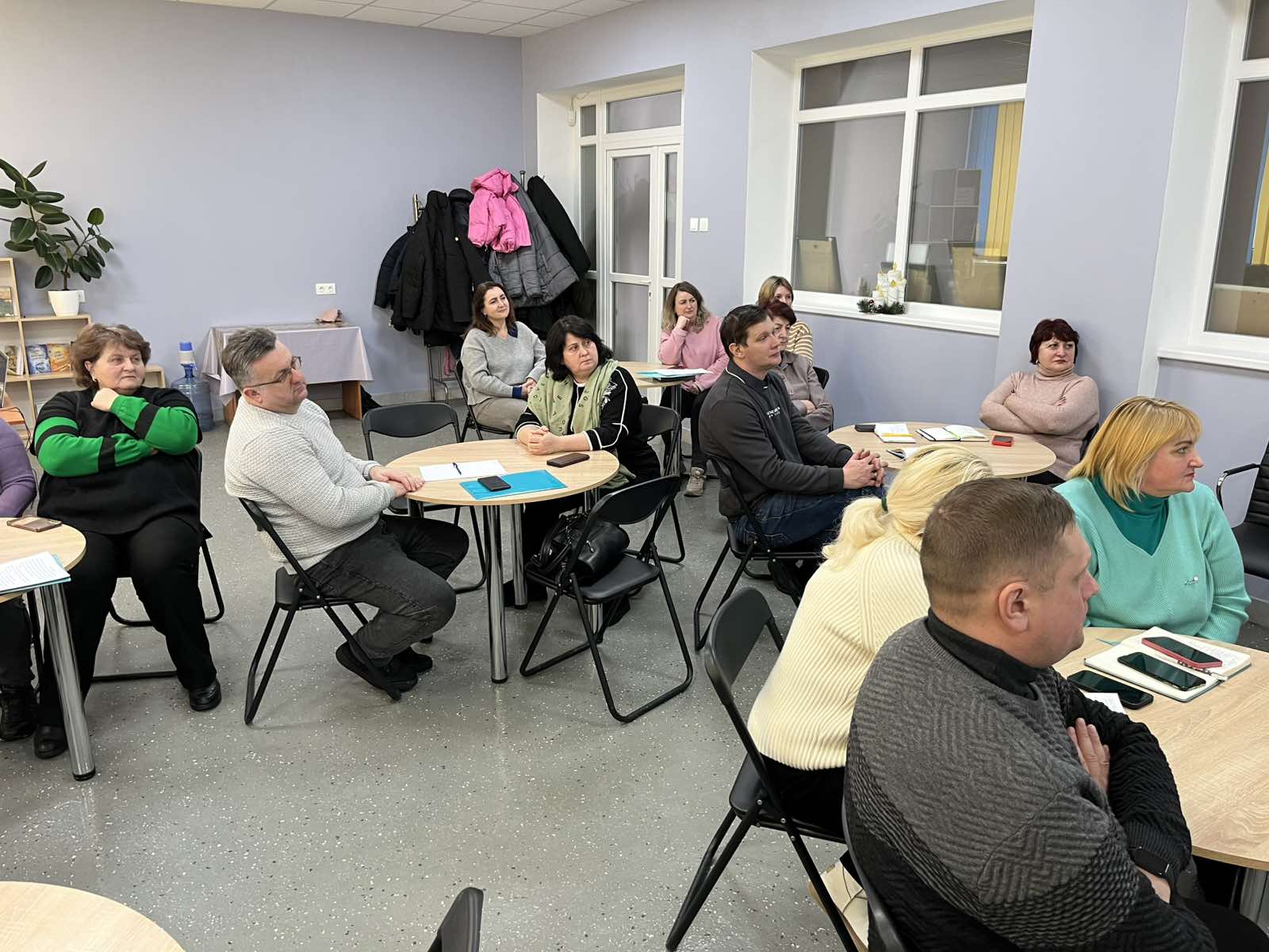 У обговоренні особливостей впровадження проєкту в громаді взяли участь керівники закладів загальної середньої освіти, представники місцевих фахових коледжів, начальник відділу житлово-комунального господарства, благоустрою, охорони навколишнього природнього середовища, інфраструктури та комунальної власності міської ради, Тетяна Карачун, приватні підприємці та батьки.